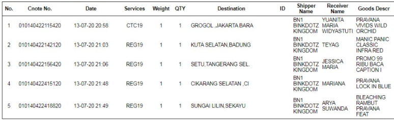 JNE & SICEPAT 13 JULY 2020 000107707068 Fahri Pangestu000107707069 Sofia000107707070 Fiola Natasia000107707071 Savina000107707072 Nia000107707074 Alma